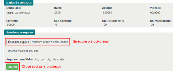 Para encaminhar a relação de funcionários atualizada veja em Inclusão, já para gerar 2ª via de boleto clique em Prorrogação, no menu a seguir. Caso queira prorrogação de boleto, siga o passo a passo descritos na segunda aba. Em caso de boletos vencidos, favor entrar em contato com a central de atendimento pelo número: 0300.33.86546, então digite as opções 4 e 5 para solicitar a segunda via.